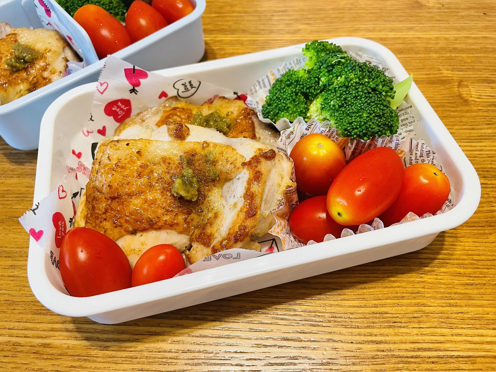 看看今日餐單:柚子胡椒雞扒、西蘭花、車厘茄